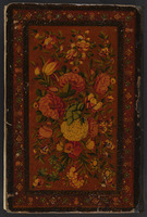 نوش آفرین گوهر تاج Conte persan, sans indication de nom d’auteur. Copie achevée (f. 116) par سید باقر معلم Sayyid Bāqir Mu’allim en 1261H. (1845) et son colophon est suivi de deux bayt persans. Au f. 1v, un titre « Nouch Aferin » est inscrit.