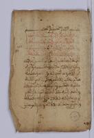 [التقييد القاطع لحجج أهل الانكار والتشديد الناصر لضعف المريدين من أهل التوفيق والتسديد ] Traité de soufisme. Il est possible que le texte soit autographe. Le f.1r est la fin du texte. Incipit : بسم الله ..الحمد لله الذي هدى من أحبه لطريق الذكر بالتهليل...وبعد فيقول...محمد امزيان بن الحداد لما اقامني الله تعلى في مقام اعطاء ورد طريقة الرحمانية...صرت اعطيه لكل من طلبه مني أو لم يطلبه...وأكثر الآخذين عني العوام...فكثر عليهم الانكار والاعتراض من بعض المعاصرين المدعين لمعرفة الله تعلى الحاسدين عباد الله على ما آتاهم الله من فضله...هب علي ريح العزم على أن أجمع ما حضرني من كلام الأيمة الاعلام في تيسسير ذلك التشريد وحل ذلك التعقييد ليدوموا على ذكرهم ويلازموا وردهم . Explicit : ومن يحفظ حرمة الله ورسوله يسمونه بائسا ويقولون لا خير عنده وهو لو فتح باب الكلام في حقايق الحقايق ما شموا له رايحة اعاذنا مما ابتلاهم بمنه وكرمه انتهى كلامه وبه تم التقييد .